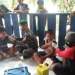 Ciptakan Generasi Sehat, Satgas Pamtas Yonif 623/BWU Bersama Tim Kesehatan Memberikan Suntik Vaksin