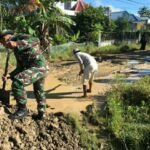 Jalan Berlubang, Satgas Yonif 623/BWU Laksanakan Karya Bhakti Perbaikan Jalan