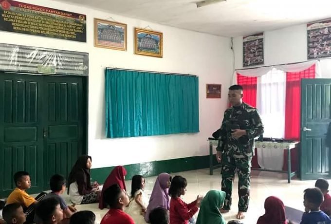 26 Anak Rumah Baca Teras Perbatasan Diajak ke Pos TNI Aji Kuning Pengenalan TNI