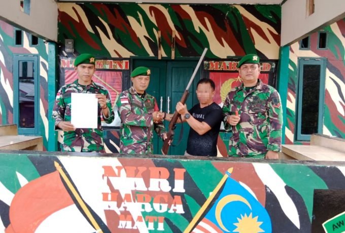 Petani Kelapa Sawit di Tolin Onsoi Serahkan Senjata Penabur ke Satgas Pamtas