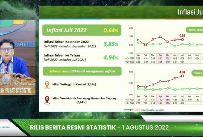 Jakarta – Badan Pusat Statistik (BPS) mencatat inflasi sebesar 0,64 persen pada Juli