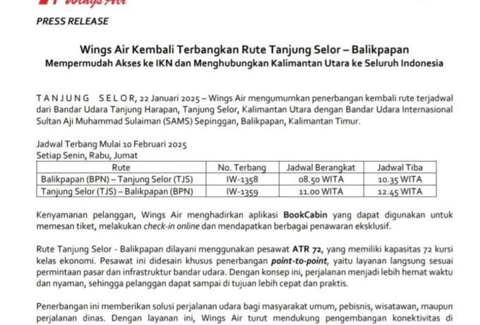 Penerbangan Mulai 10 Februari, Harga Tiket Pesawat Tanjung Selor-Balikpapan Turun