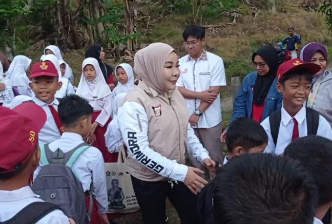 Kunjungi Deerah Perbatasan Rahmawati Berikan Bantuan ke Pelajar SD