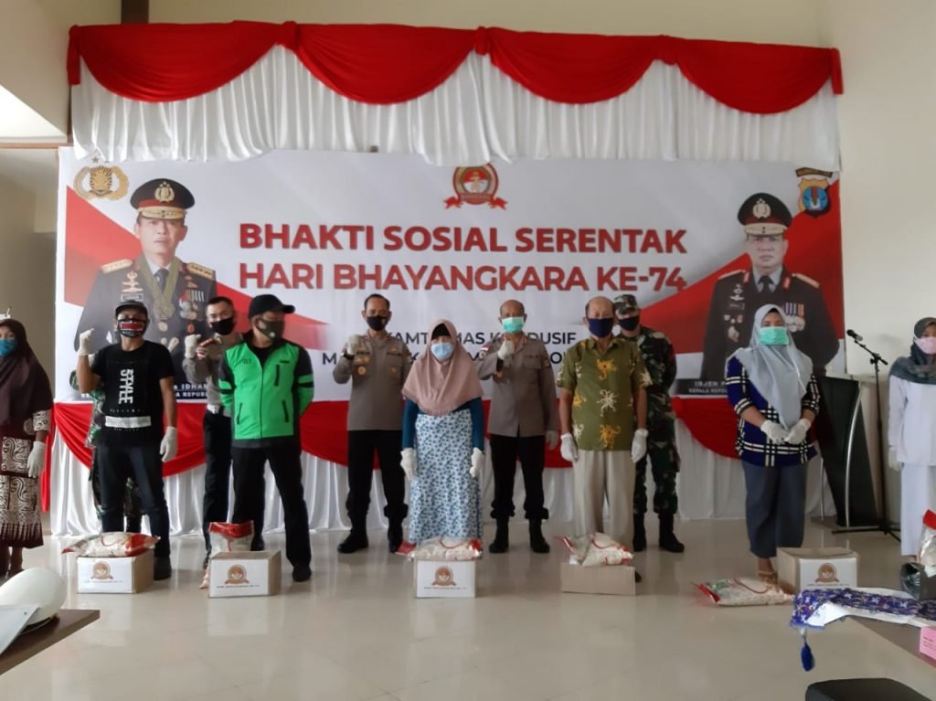 Bakti sosial (Baksos) serentak pun dilaksanakan sebagai salah satu wujud nyata kepedulian Polri terhadap masyarakat yang terdampak langsung dari pandemi Covid-19. Kapolda Kaltara, Irjen Pol. Drs. Indrajit SH pun memberikan bantuan paket sembako dan beras sebanyak 8,7 ton kepada masyarakat terdampak covid-19, Jumat 26 Juni 2020.
