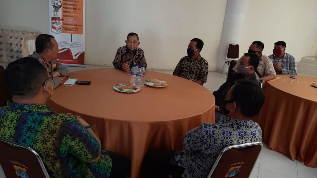 TANJUNG SELOR – Guna menjalin tali silahturahmi antara kepolisian dengan para tokoh Adat, Kapolda Kaltara Irjen Pol Drs. Bambang Kristiyono, M.Hum, didampingi oleh Dir Binmas Kombes Pol Eri Dwi Hariyanto, S.I.K, dan Plh Kabid Humas AKBP Budi Rachmat, S.I.K.,M.Si menerima kunjungan dari Lembaga Adat Dayak Kaltara, di ruang Lensa Polda Kaltara, Rabu (09/09/2020).