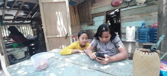 “Yang sulit anak-anak berteduh di bawah pohon sawit. Kalau mencari jaringan ke Desa Apung itu kejauhan,” paparnya.