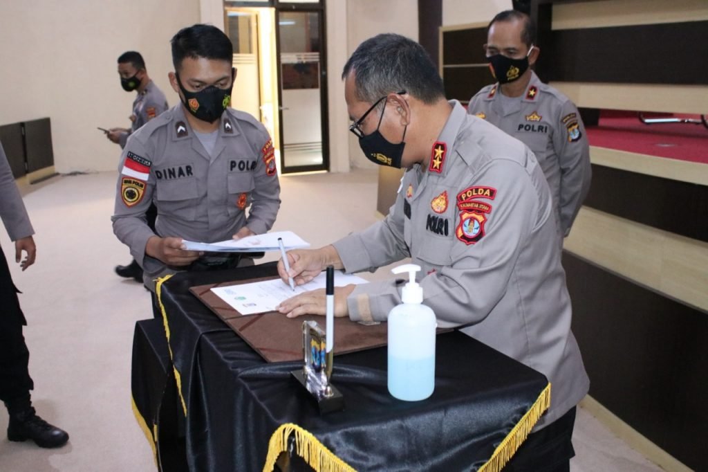 TANJUNG SELOR – Kapolda Kaltara Irjen Pol Drs. Bambang Kristiyono, M.Hum melakukan penandatangan MoU dengan Perbankan dan pengembangh perumahan, Rabu (17/03/2021) di Command Centre Polda Kaltara.