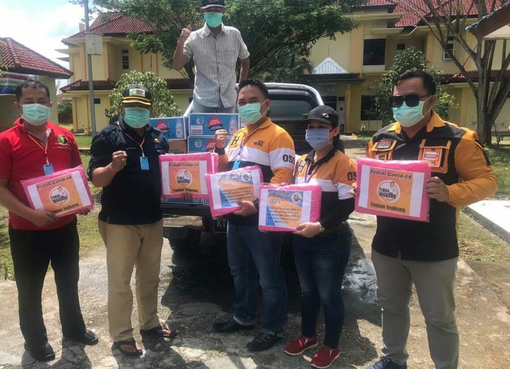 TANJUNG SELOR – Relawan peduli penanganan pandemi Corona (Covid-19) yang tergabung dalam komunitas Teman Ingkong dan Sobat Tasa di Kabupaten Bulungan, Kalimantan utara (Kaltara), menyerahkan bantuan puluhan Alat Pelindung Diri (APD), makanan dan minuman bergizi untuk tenaga medis yang bertugas di posko Karantina penanganan covid-19 gedung asrama BKSDM Bulungan, Tanjung Selor.