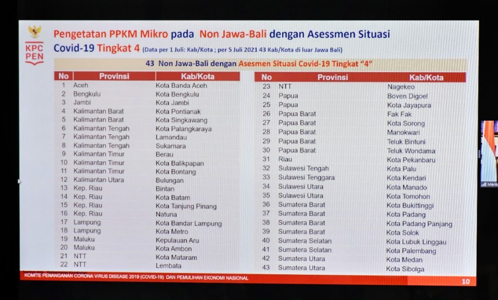 Dalam rapat terbatas tersebut, Menko Airlangga memaparkan bahwa terdapat 43 Kabupaten/Kota di luar Jawa-Bali dengan level asesmen 4 yang akan diberlakukan pengetatan PPKM Mikro, termasuk Kalimantan Utara khususnya di Kabupaten Bulungan.
