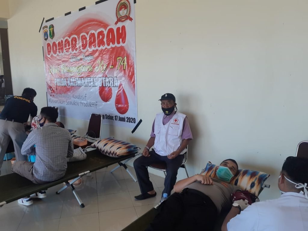 TANJUNG SELOR – Dalam rangka memperingati Hari Bhayangkara Ke-74, Polda Kaltara menggelar kegiatan bakti sosial (baksos) donor darah, Rabu 17 Juni 2020.