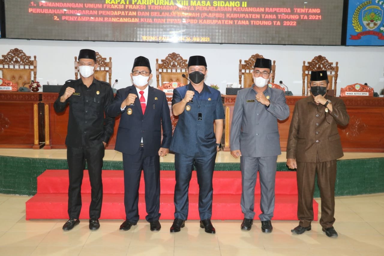 TANA TIDUNG – Bupati Tana Tidung, Ibrahim Ali sampaikan Rancangan Kebijakan Umum Anggaran (KUA) dan Prioritas Plafon Anggaran Sementara (PPAS) APBD Kabupaten Tana Tidung (KTT) Tahun 2022 dalam rapat paripurna yang digelar oleh DPRD KTT di ruang Rapat Paripurna DPRD KTT, Senin, 26 Juli 2021.