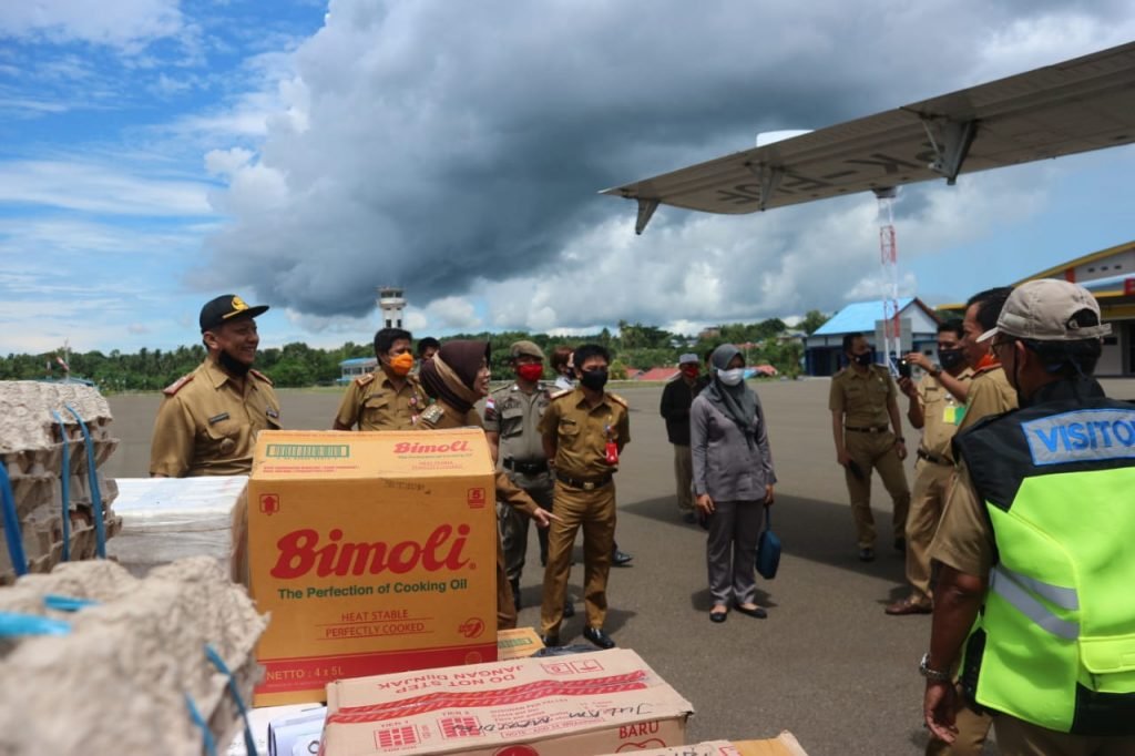 NUNUKAN – Bupati Nunukan, Hj. Asmin Laura Hafid didampingi Sekretaris Daerah (Sekda) Kabupaten Nunukan Serfianus, dan beberapa pejabat lainnya me-launching SOA (subsidi ongkos angkut) barang sebanyak 15 kali penerbangan dengan mengunakan Heavilift Aviation Indonesia di Bandara Nunukan, Selasa 23 Juni 2020.