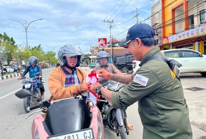 PWI Bulungan Bersama Kepolisian Bagikan Bendera Merah Putih