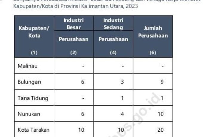 benuanta.co.id, TANJUNG SELOR – Berdasarkan catatan Badan Pusat Statistik (BPS) Kalimantan Utara