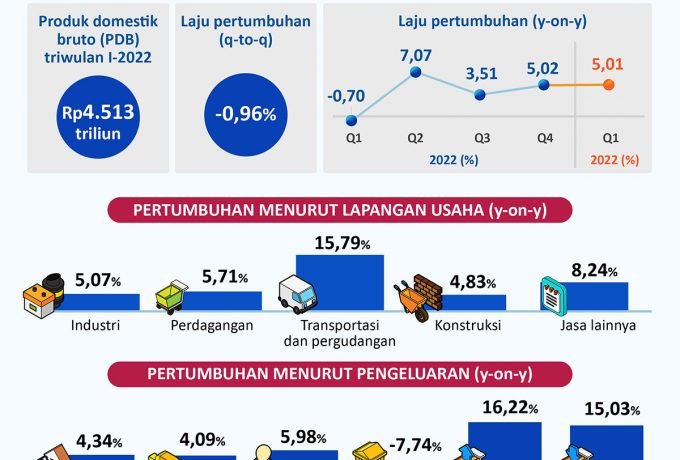 Ekonomi Indonesia triwulan-I 2022 tumbuh 5,01 persen dibanding periode sama tahun sebelumnya