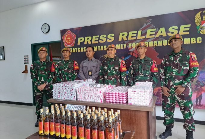 Batalyon Arhanud 8/MBC Amankan 1.586 Pcs Kosmetik Ilegal dan 47 Botol Miras Tanpa Tuan