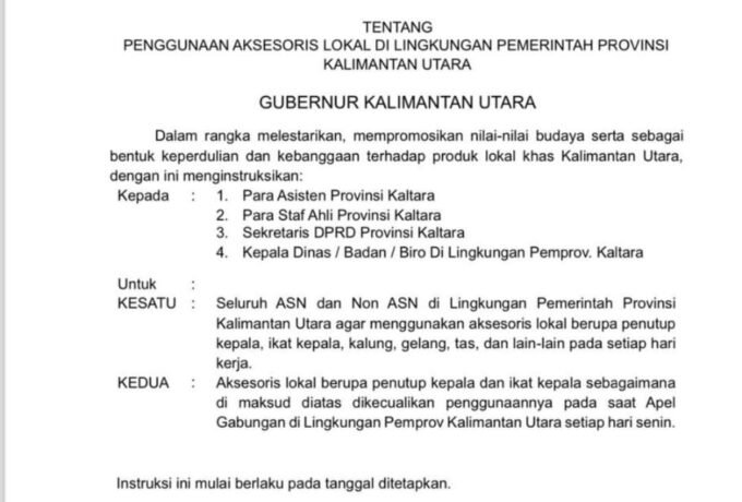 Gubernur Kaltara Wajibkan ASN Pakai Aksesoris Buatan Lokal