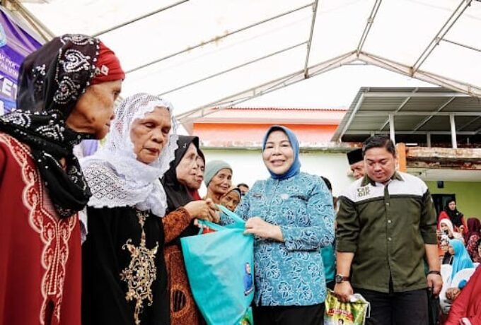 Bagikan Bansos ke Lansia, Ketua TP-PKK Kaltara juga Ikut Berjalan Kaki Temani Pelajar Perbatasan ke Sekolah