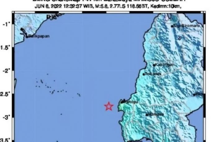 Mamuju – Gempa dengan magnitudo 5,8 yang terjadi pada Rabu siang (8/6)