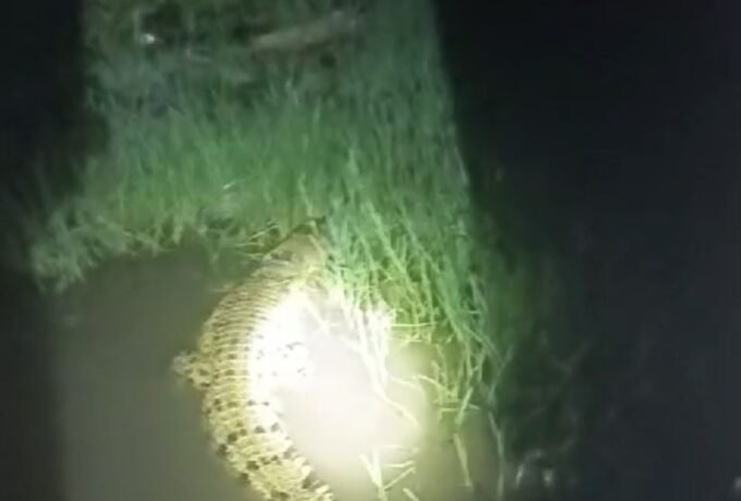 Bikin Kaget! Buaya Muncul Samping Jendela Rumah Warga Jalan Lingkar Nunukan