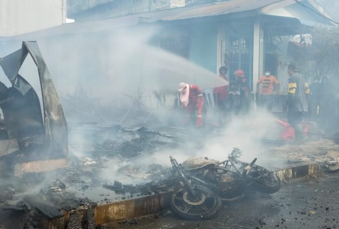 benuanta.co.id, NUNUKAN – Diamuk si jago merah, tiga bangunan di Jalan RA