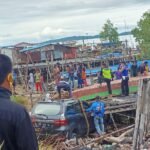 Mobil Nyungsep di Pinggir Gegulang Rumput Laut Warga di Nunukan