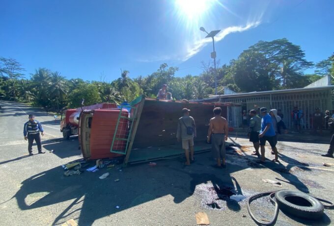 benuanta.co.id, NUNUKAN – Satu unit truk pengangkut bahan bakar minyak (BBM) terguling