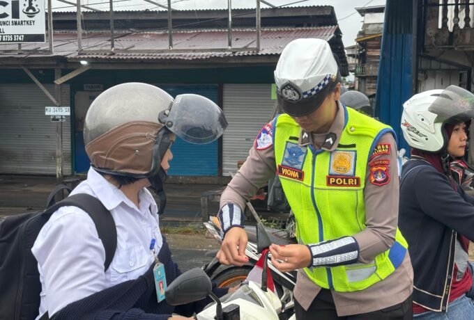 Satlantas Polres Malinau Bagikan Bendera Merah Putih, Dorong Semangat Nasionalisme