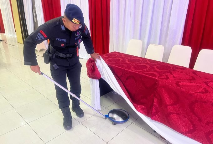 Jibom Brimob Polda Kaltara Sterilkan Lokasi Rapat Pleno KPU Provinsi