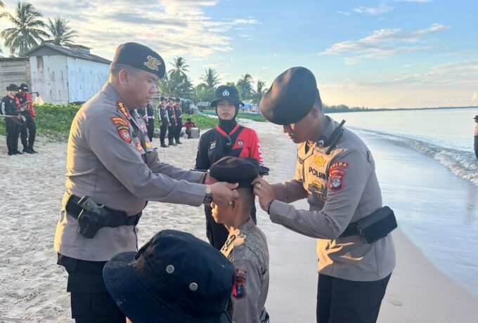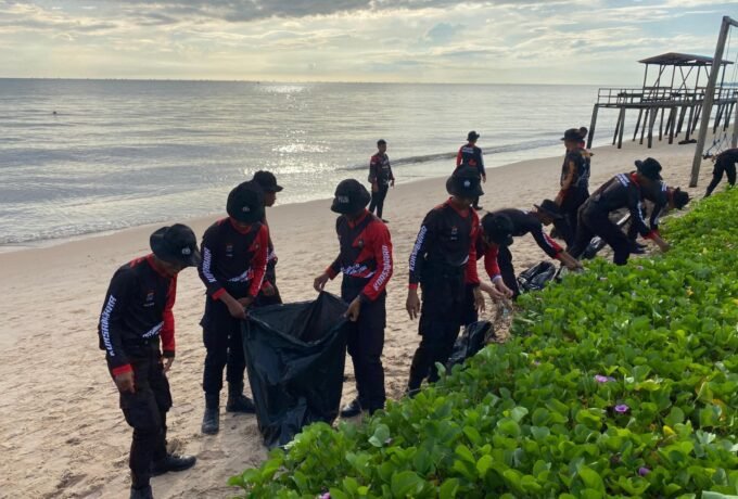 Bintara Remaja AK 52/56 Polda Kaltara Gelar Bakti Sosial Bersihkan Pantai Mudani