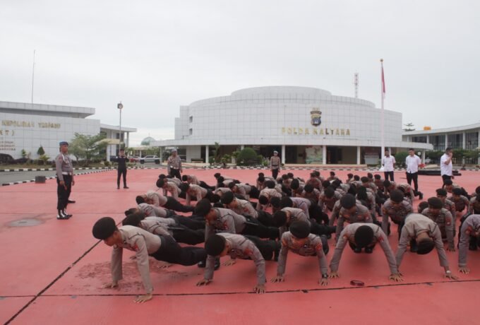 Direktorat Samapta Polda Kaltara Kukuhkan Baja AK 52/56 Lewat Tradisi Pembaretan di Tanah Kuning