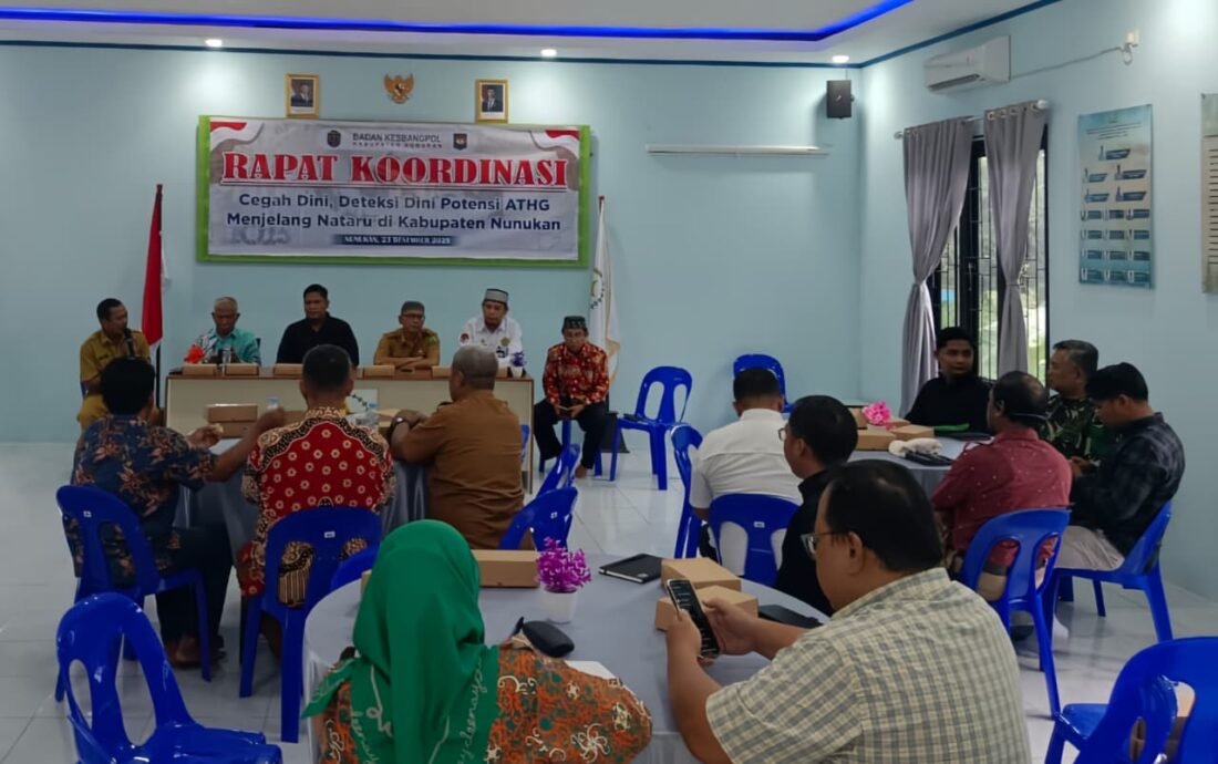 Langkah ini diwujudkan lewat Rapat Koordinasi Cegah Dini dan Deteksi Dini Ancaman, Tantangan, Hambatan, dan Gangguan (ATHG) yang digelar di Sekretariat Forum Kerukunan Umat Beragama (FKUB) Nunukan, Selasa (23/12/2025).