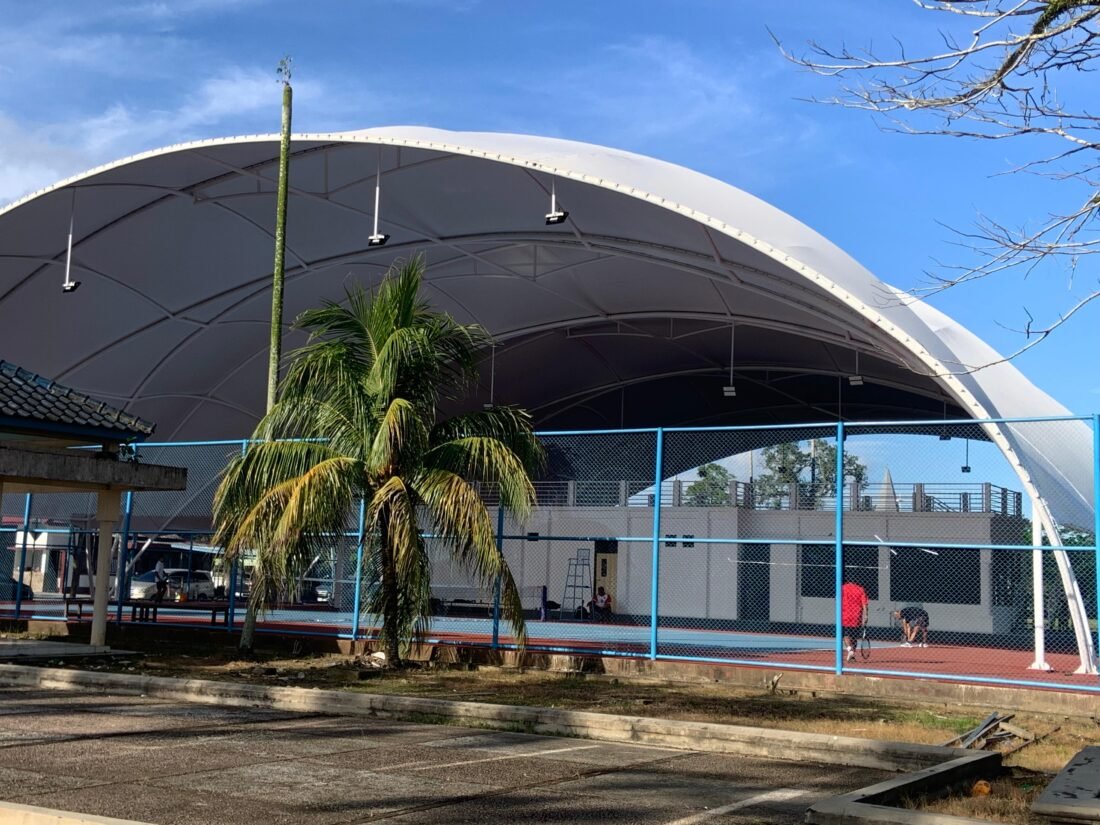 Namun, karena keterbatasan anggaran, pembangunan sementara difokuskan pada lapangan tenis. Dengan menghabiskan anggaran sekitar Rp 4,5 miliar. Secara teknis, lapangan dibangun dengan konsep semi indoor menggunakan atap membran yang dirancang memiliki ketahanan jangka panjang.