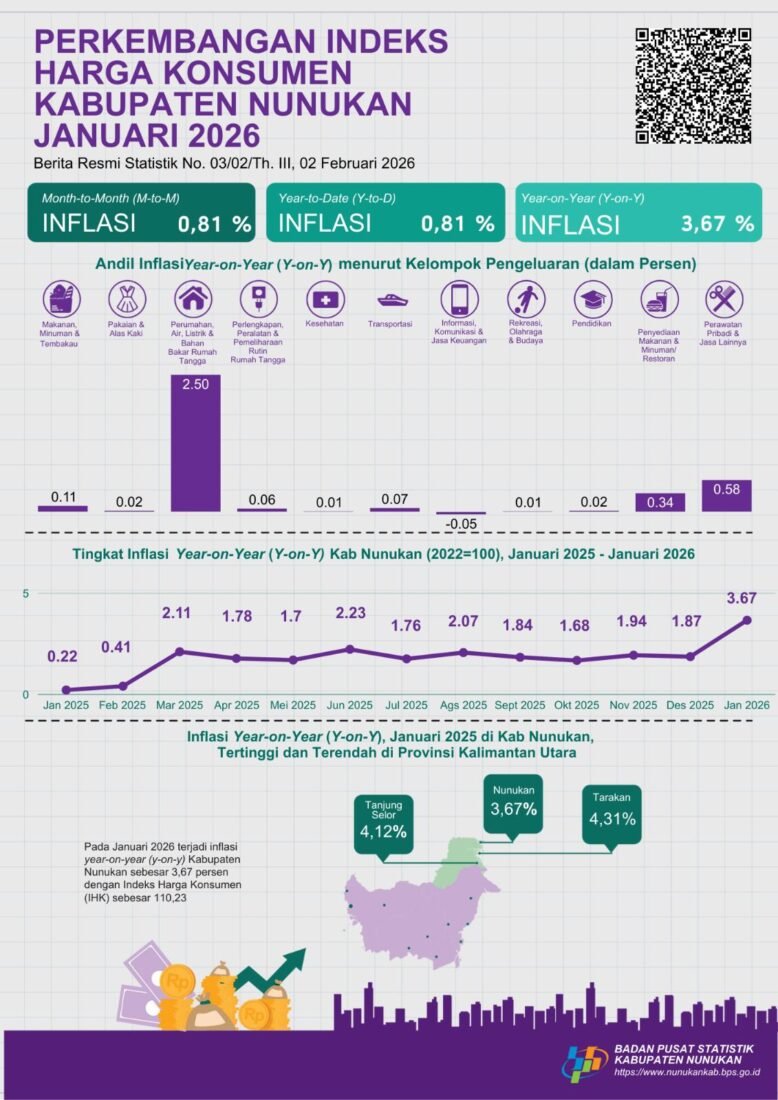 benuanta.co.id, NUNUKAN– Badan Pusat Statistik (BPS) Kabupaten Nunukan mencatat adanya inflasi pada Januari 2026.