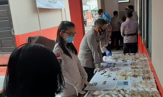 TANJUNG SELOR – Pemeriksaan urine yang dilaksanakan Polres Bulungan, dari 257 anggota Polres yang diperiksa ditemukan satu personel positif menggunakan narkoba. Sehingga Kapolres Bulungan AKBP Teguh Triwantoro mengambil langkah tegas untuk memproses personel tersebut.