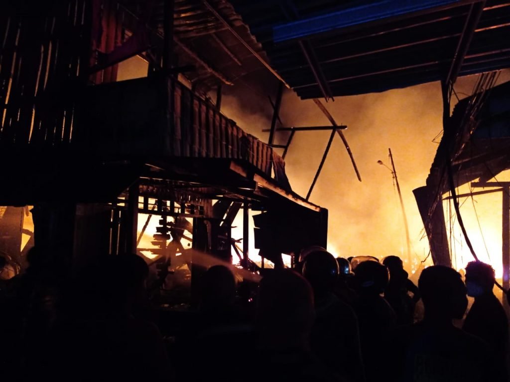 NUNUKAN – Kebakaran yang terjadi di Jalan Hasanudin, Dermaga Pasar Inhutani, Kabupaten Nunukan, sekira pukul 18.48 Wita Ahad (10/1/2021) tadi, menghanguskan puluhan rumahbwarga. Informasi sementara yang diperoleh benuanta.co.id, sebanyak 57 rumah hangus diamuk si jago merah.