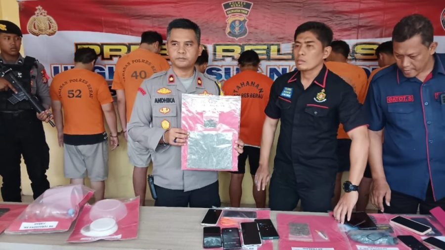 benuanta.co.id, BERAU – 6 orang dibekuk tim Satresnarkoba Polres Berau atas kepemilikan narkoba jenis ganja seberat 122 gram. Keenam orang ini terdiri dari dua pemakai yaitu (RP) dan (FS) serta empat pengedar berinisial (F), (CA), (MF) dan (SC).
