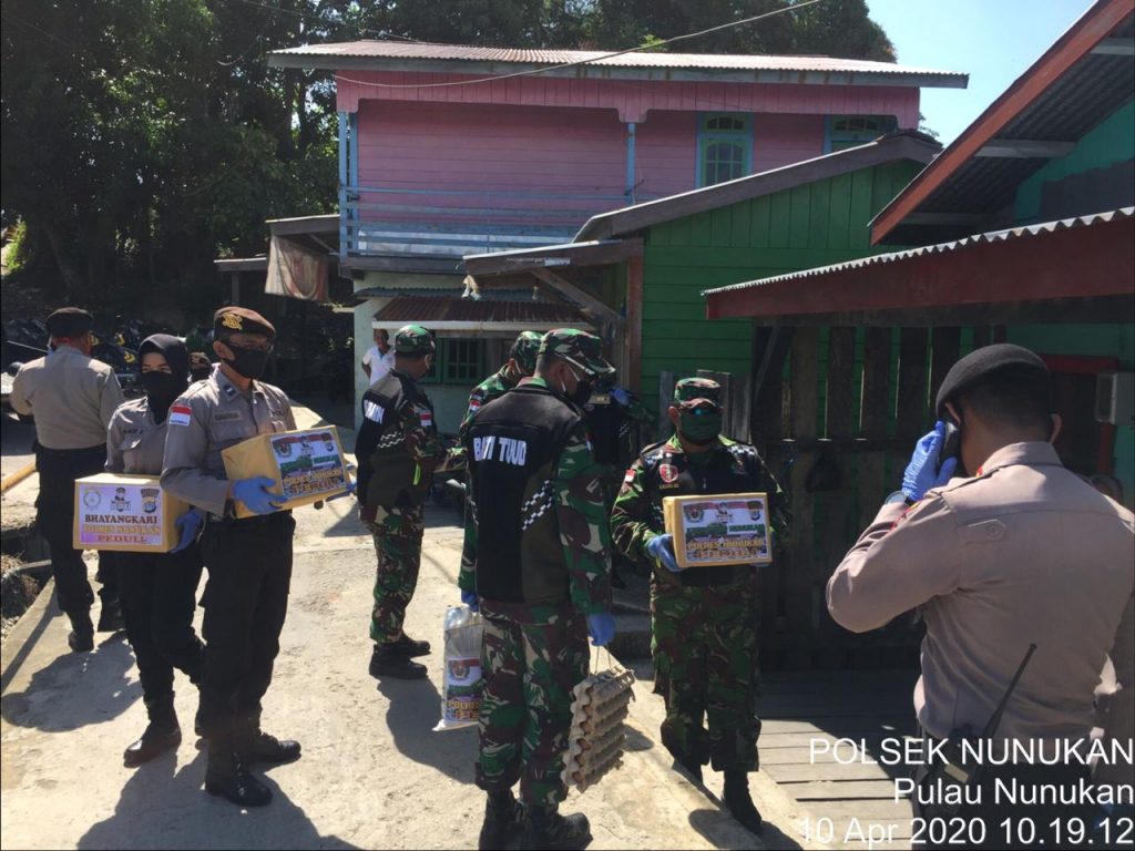 Paket sembako diberikan oleh Kapolres Nunukan AKBP Teguh Triwantoro SIK HM, Dandim 0911 Nunukan Letkol Czi Eko Pur Indriyanto SE, MI POL,MTr Han, Danlanal Nunukan Letkol Laut ( P) Anton Pratomo dan Waka Polres Nunukan Kompol Imam Muhadi, S.Sos MH MH.