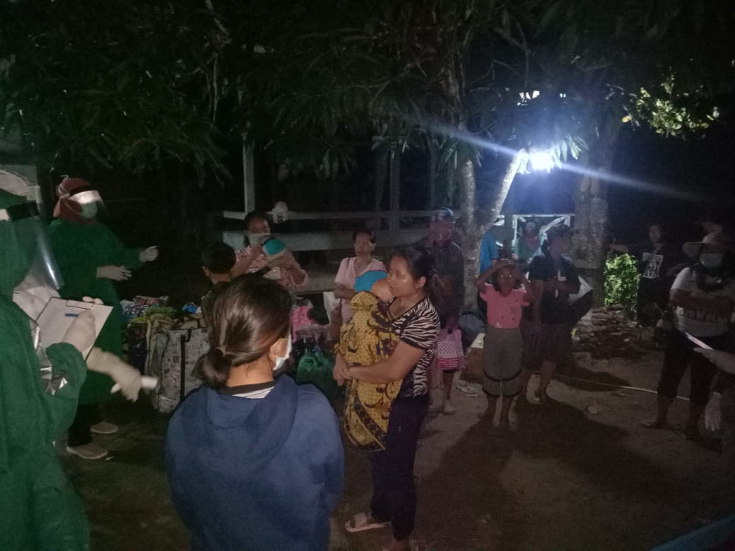 NUNUKAN – Dalam rangka antisipasi dan Penyebaran virus Corona (Covid-19) masuk ke wilayah Kecamatan Lumbis, Koramil 0911-05 bekerja sama dengan Tim GTPC Kecamatan Lumbis, Kabupaten Nunukan melakukan pemeriksaan suhu tubuh terhadap warga Negara Indonesia (WNI) yang baru pulang dari Malaysia di dermaga tradisional Dapiton, Desa Mansalong, Kecamatan Lumbi, Kabupaten Nunukan, Provinsi Kaltara, Ahad (14/04/2020).