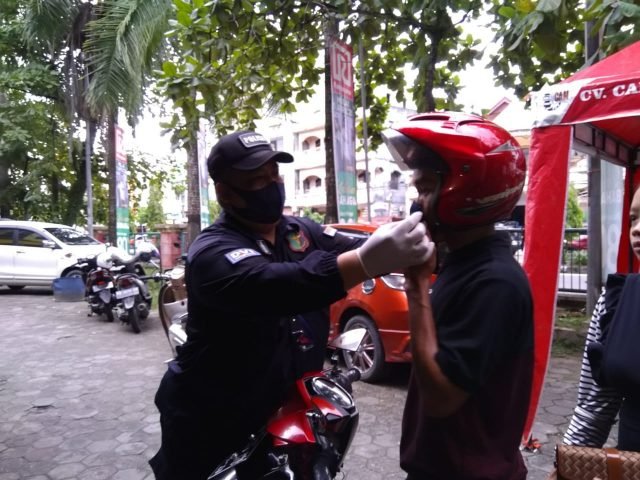 TARAKAN – Dalam simulasi new normal atau tatanan normal baru yang akan diterapkan di Tarakan, petugas menyosialisasikan hidup normal dengan tetap mengacu pada protokol kesehatan mencegah penyebaran covid-19.