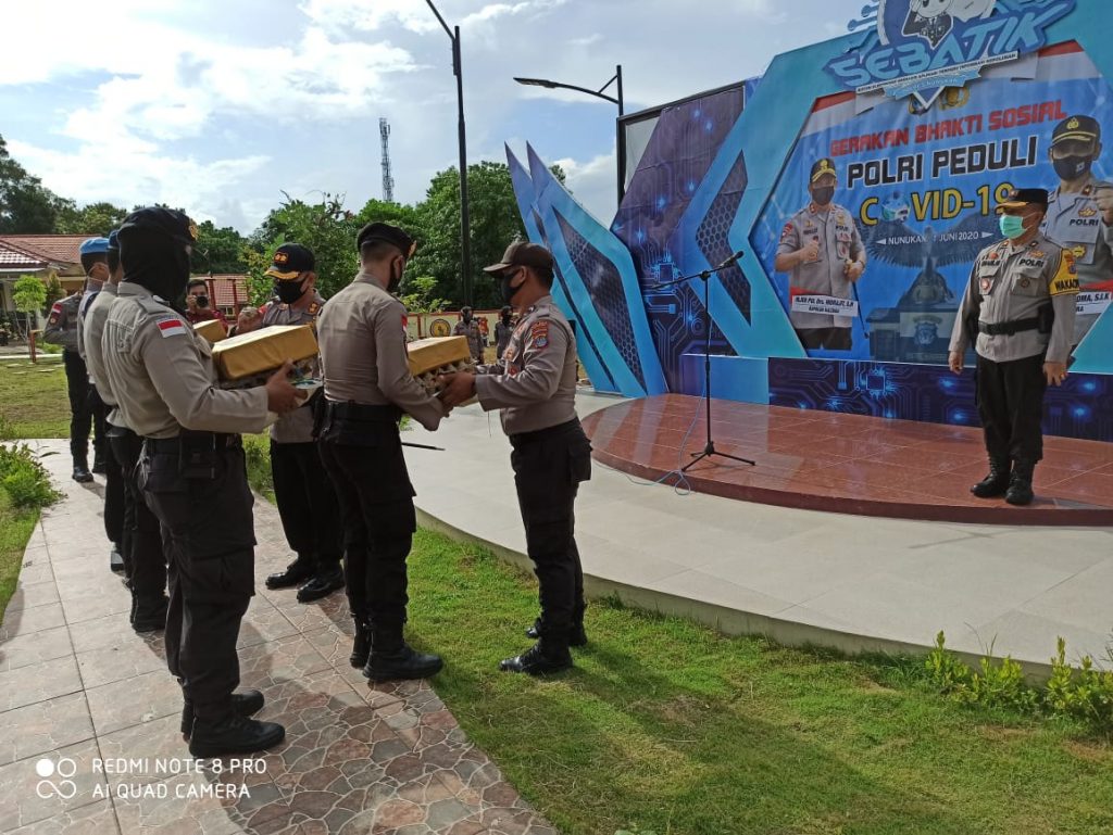 Di hari Peringatan Lahirnya Pancasila 1 Juni 2020, Senin tadi pagi, Polres Nunukan kembali menggelar Aksi Bakti Sosial polri Covid-19 yang digelar di Taman Endra Polres Nunukan, sekira pukul 08.00 WITA.