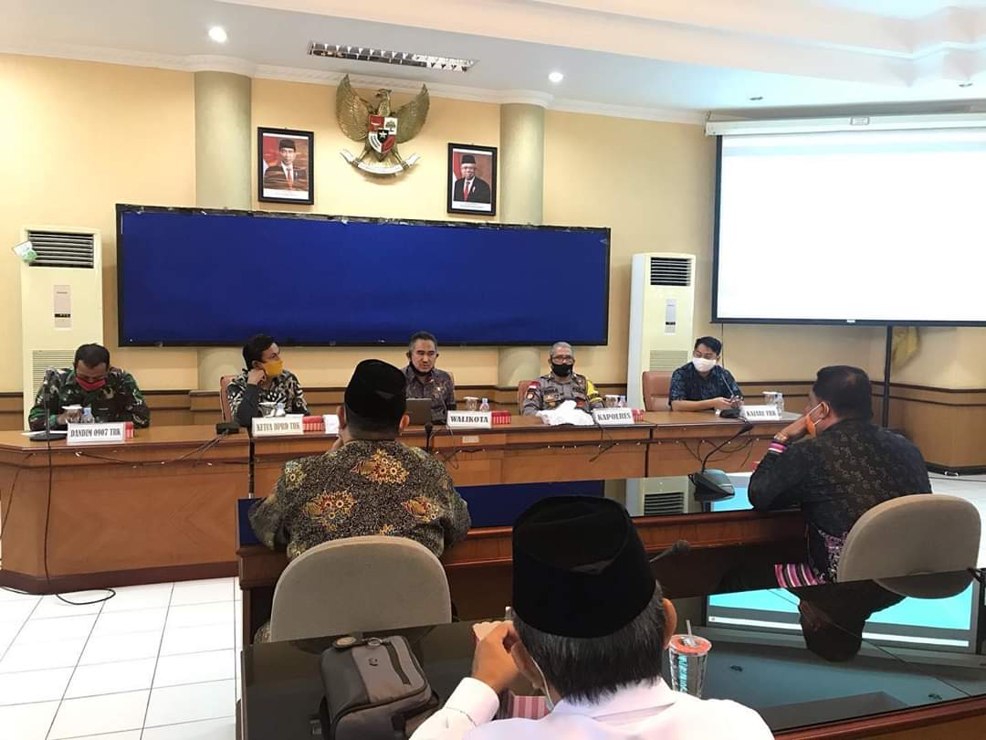 TARAKAN – Walikota Tarakan, dr. H. Khairul, M.Kes bersama Forkopimda dan para tokoh agama serta beberapa instansi teknis terkait melakukan rapat koordinasi relaksasi Pembatasan Sosial Berskala Besar (PSBB) yang akan mulai dilaksanakan secara bertahap di Kota Tarakan.