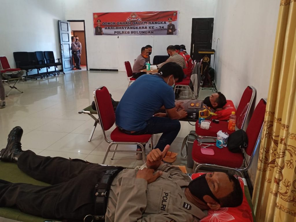 TANJUNG SELOR – Dalam rangka memperingati Hari Bhayangkara Ke-74, Polres Bulungan gelar aksi donor darah bagi seluruh personelnya. Bertempat di ruang aula Polres Bulungan, kegiatan dipimpin langsung Wakapolres Bulungan, Kompol Roberto Asfrianza.
