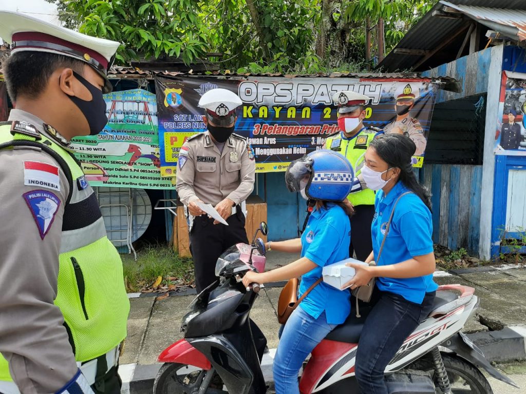 Kegiatan OPS Patuh hari ini dilaksanakan di Jalan Bhayangkara dan Alun-Alun Kota Nunukan. Kegiatan edukasi dengan pembagian masker dan pembagian brosur terkait OPS Patuh Kayan 2020, dengan tema Kamseltibcar Lantas dengan Protokol Kesehatan dalam Pencegahan Covid-19.