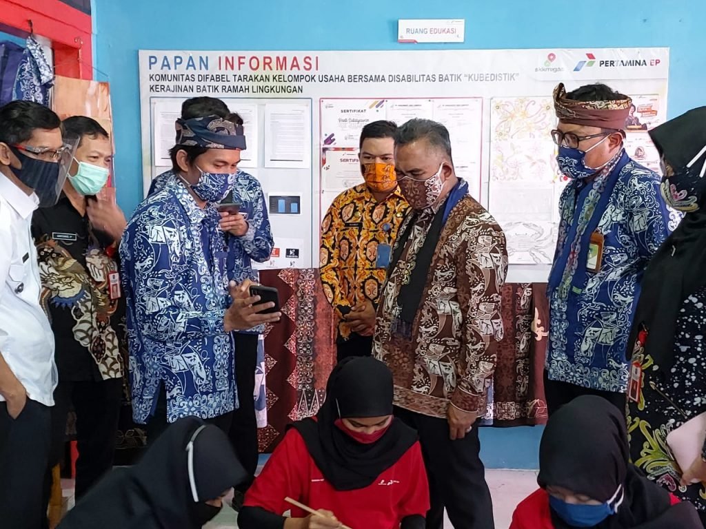 TARAKAN – Walikota Tarakan dr. Khairul bersama manajemen Pertamina EP Tarakan Field meresmikan Rumah Batik Disabilitas dan Lomba Karya Desain Motif Batik Se-Kalimantan Utara, di Rumah Batik Disabilitas di jalan Pulau Nias, RT 3, Kelurahan Kampung Satu/Skip, Jumat, 14 Agustus 2020.