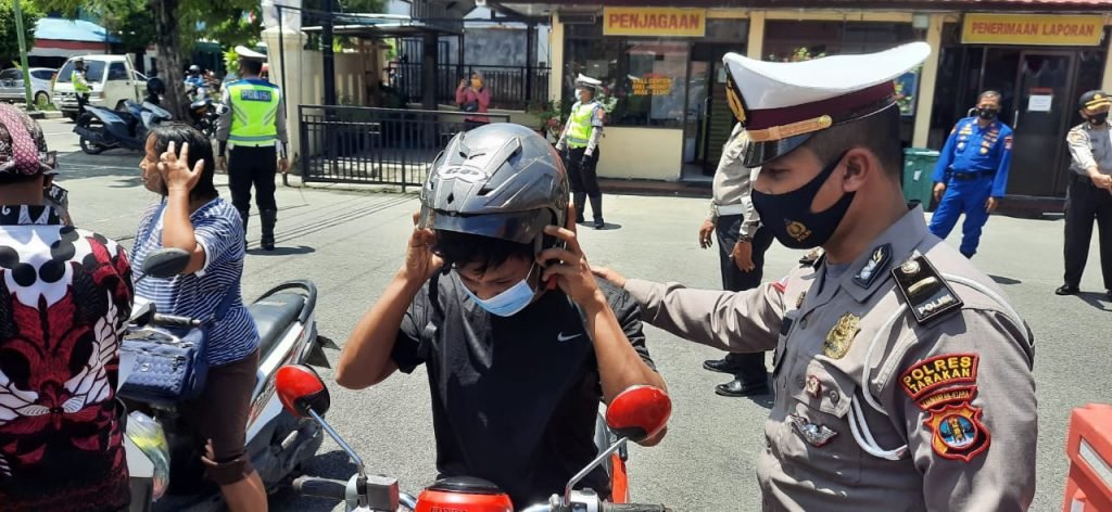 Kapolres Tarakan, AKBP Fillol Praja Arthadira mengatakan pembagian masker ini dilakukan dalam upaya memperkuat protokol kesehatan khususnya di Tarakan.