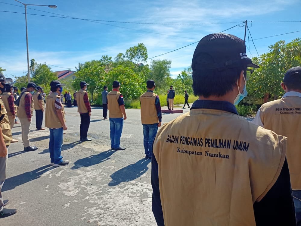 NUNUKAN – Dalam menghadapi tahapan pilkada yang sedang bergulir, Badan Pengawas Pemilihan Umum (Bawaslu) Kabupaten Nunukan menggelar apel siaga pengawasan Pilkada serentak tahun 2020, di Depan kantor Bawaslu Nunukan, Sabtu (26/9/2020).