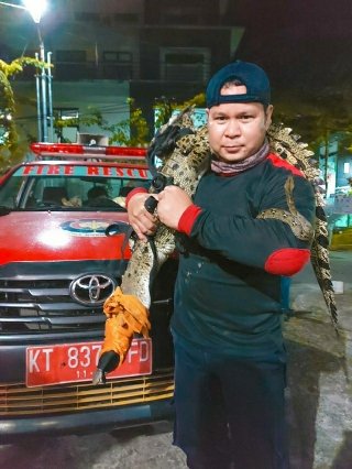 “Setelah debit air sungai berkurang, buaya tersebut pun muncul ke permukaan dan personel tim Fire Rescue Tarakan bergegas memasang jaring dan peralatan-peralatan yang sudah disiapkan,” tereng Kasi PMK Tarakan Irwan kepada benuanta.co.id.