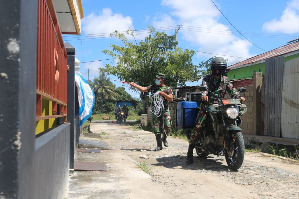 Penyemprotan ke area pemukiman warga tersebut guna mendukung upaya pencegahan penyebaran Covid-19,” ucap Dandim 0907/Trk Letkol Inf Eko Antoni Chandra Lestianto di lokasi.
