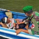 Tak Sanggup Berjalan, Ami Diberikan Pengobatan di Atas Ketinting oleh Satgas Pamtas Yonif 623/BWU